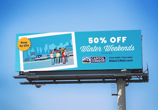 Art direction for Capitol Corridor Joint Powers Authority media and brand campaigns from 2017-2021.