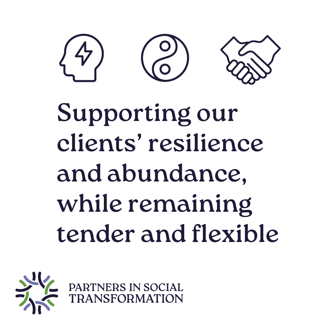 Partners in Social Transformation supports individuals and teams experiencing periods of crisis, transition, or growth and focuses on working with new and emerging QTBIPOC leaders and nonprofit executive directors. PST offers healing-centered, trauma-informed coaching and consulting to support social movement leaders, healers, and practitioners who want to live and work in alignment with their values.